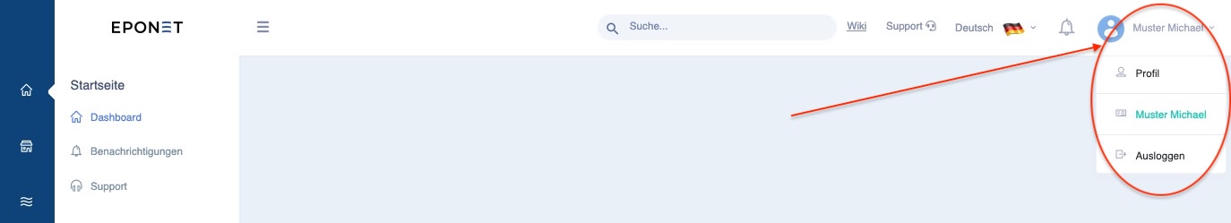 Der Benutzer des Kontos, welchem Sie nun die Berechtigung erteilt haben, kann nun von seinem Konto per Klick auf seinen Accountnamen, auf das Konto zugreifen, wo er nun Berechtigung erhalten hat.