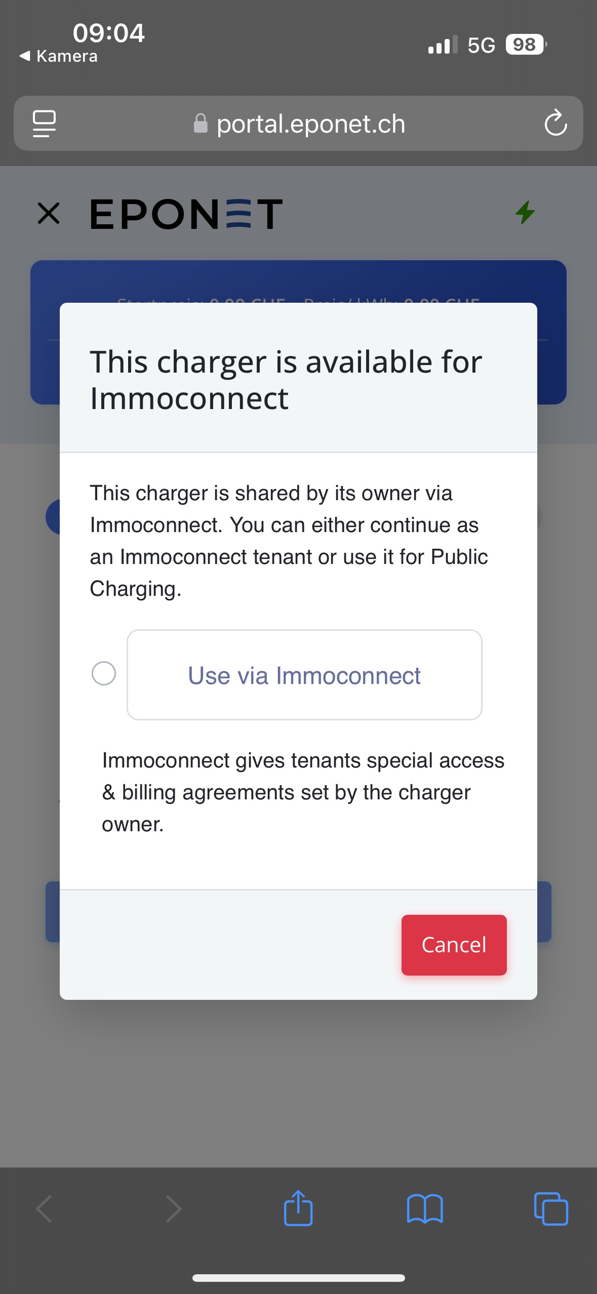 Nachdem die Mietanfrage durch die Verwaltung bestätigt wurde, können Sie die von Ihnen gemieteten Ladestationen auf der Eponet APP unter dem Reiter "ImmoConnect" einsehen.