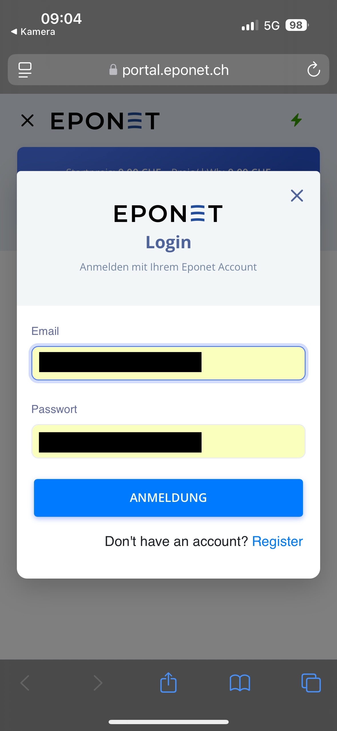 Nun können Sie sich mit Ihrem Eponet Account anmelden.