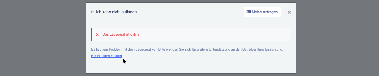 Nachfolgend können Sie weitere Details angeben, um Ihrem Betreiber eine möglichst effiziente Behandlung Ihres Anliegens zu ermöglichen und Ihren Ladebetrieb schnellstmöglich wiederherstellen zu können. Durch Absenden Ihres Rapports wird Ihr Betreiber automatisch benachrichtigt und kann sich um die weiteren Schritte kümmern.