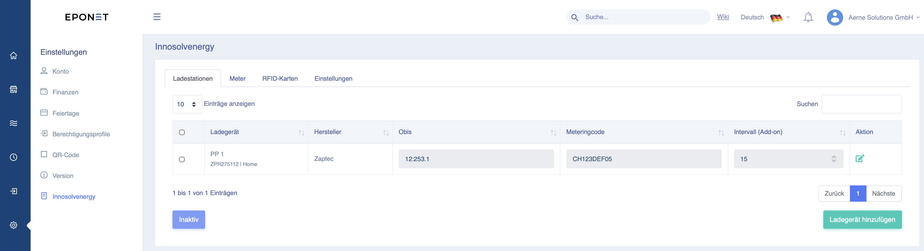 Eponet bietet eine Schnittstelle für das übertragen von Lade und Meterdaten im innosolvenergy Format an.