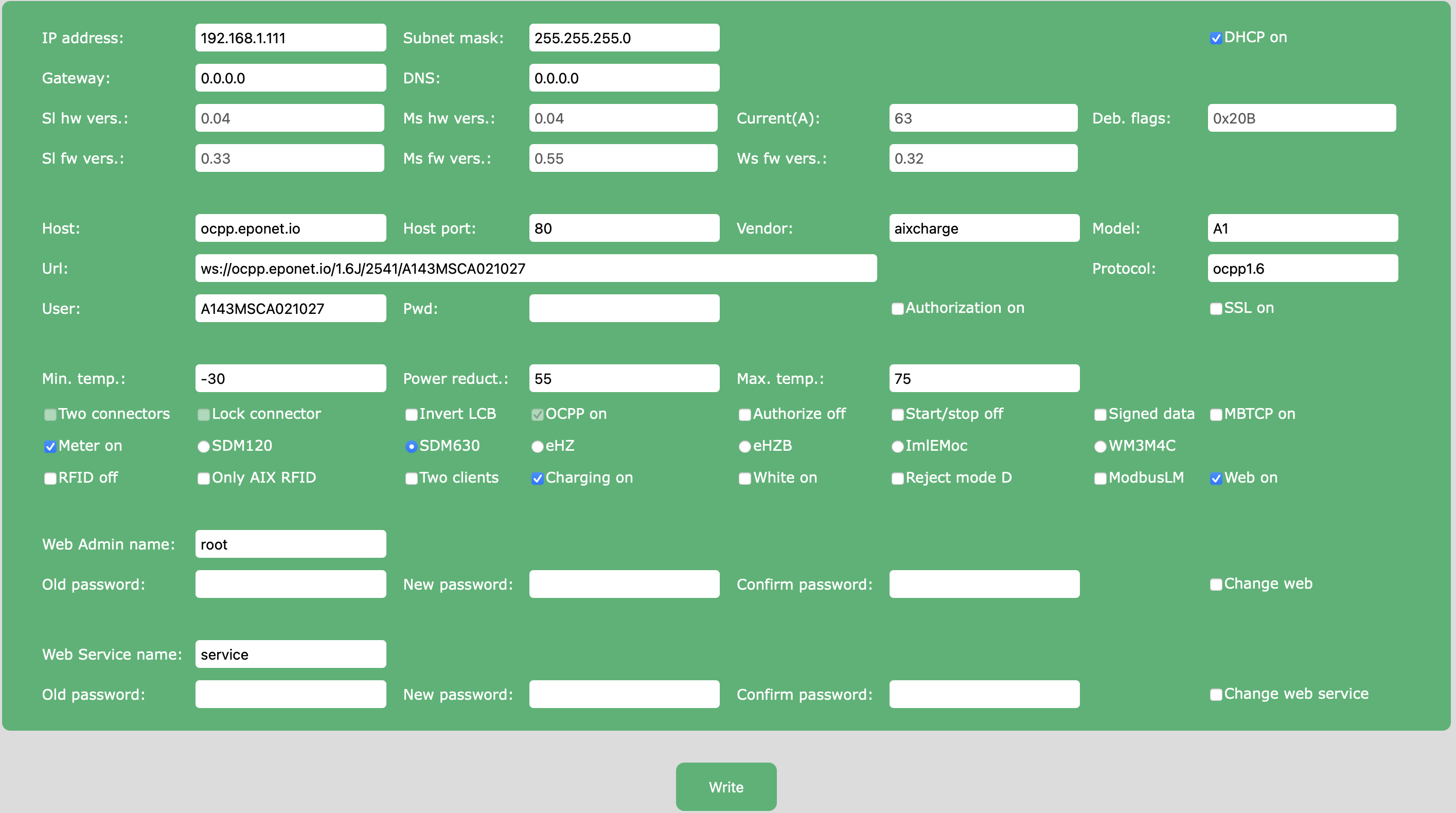 Bitte stellen Sie sicher, dass Konfiguration korrekt eingestellt ist. Bitte beachten Sie, Eponet ist nicht verantwortlich, wenn die Ladestation falsch konfiguriert und zum Beispiel offline Laden erlaubt ist und dadurch keine korrekte Abrechnung im Eponet Portal erfolgt.